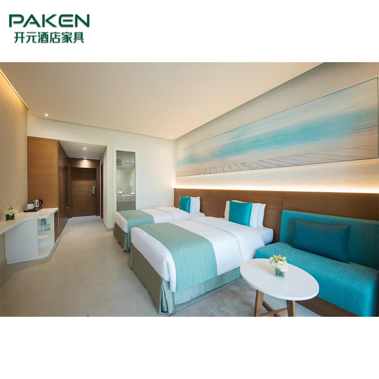 الجملة أثاث غرفة نوم فندق تصميم بسيط لون فاتح مع الكسوة اللوح الأمامي