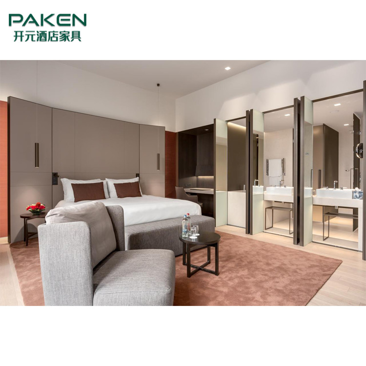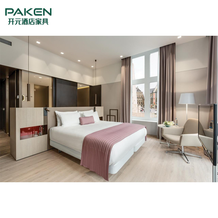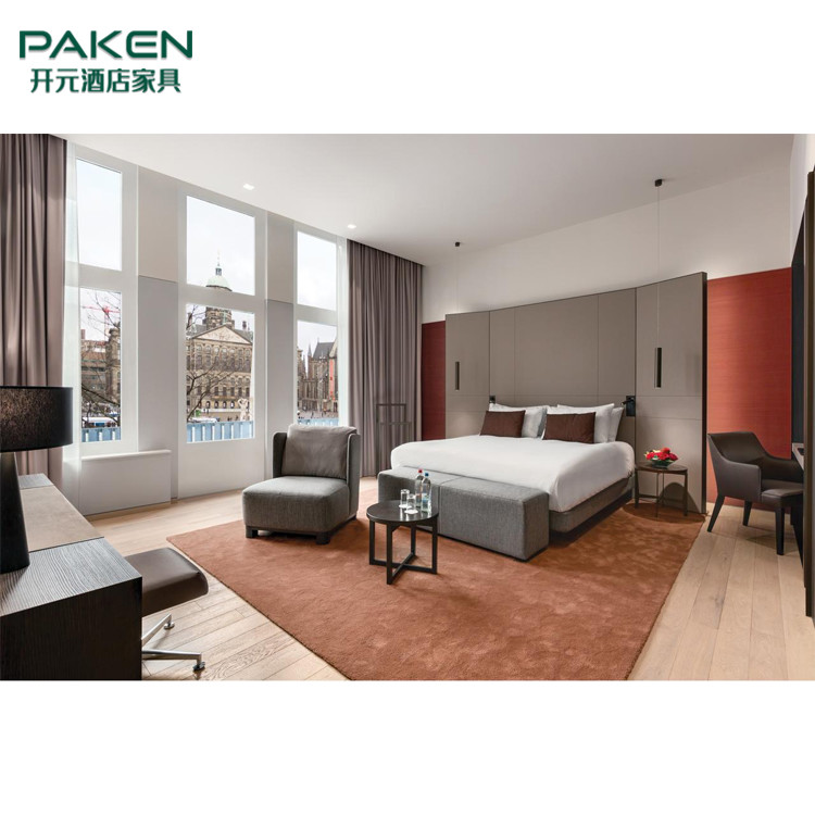 مجموعات سرير فندق نجمة بسيطة خشب الرماد بالحجم الكامل